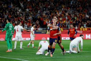 Fútbol – Copa Mundial de la FIFA – Clasificación UEFA – Grupo E – España – Turquía – Estadio La Cartuja de Sevilla, Sevilla, España – 18 de noviembre de 2025 El español Dani Olmo celebra el primer gol con Fabián Ruiz REUTERS/Marcelo Del Pozo TPX IMÁGENES DEL DÍA