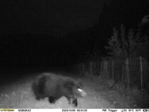 An Asian black bear, in this handout photo taken by a surveillance camera on November 9, 2025 at Fruit Park Kurouchi Orchard in Hida, Gifu Prefecture, Japan, and provided by Hida City office. Hida City office/Handout via REUTERS ATTENTION EDITORS – THIS IMAGE HAS BEEN SUPPLIED BY A THIRD PARTY. MANDATORY CREDIT. NO RESALES. NO ARCHIVES.