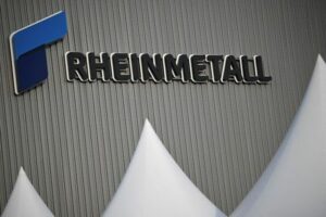 ARCHIV: Logo des Munitionsherstellers Rheinmetall am Tag der Einweihung eines neuen Artilleriewerkes des Munitionsherstellers Rheinmetall in Unterlüß, Deutschland, 27. August 2025. REUTERS/Annegret Hilse/Archivfoto