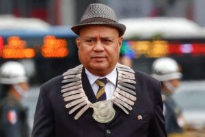 Tuvalu Prime Minister Feleti Teo at the welcome ceremony in