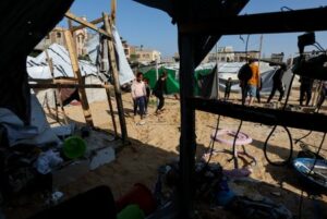 Palestinos inspeccionan el lugar del ataque israelí del miércoles contra un campamento de tiendas en Al Mawasi, Jan Yunis, en el sur de la Franja de Gaza, el 20 de noviembre de 2025. REUTERS/Ramadan Abed