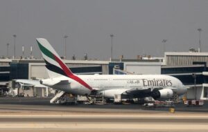 FILE PHOTO: An Emirates Airlines Airbus A380 is parked at Cairo International Airport, Egypt October 17, 2024. REUTERS/Amr Abdallah Dalsh/File Photo