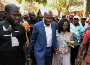 Guinea Bissau’s former Prime Minister Domingos Simoes Pereira walks with his wife after voting in the second round of Guinea Bissau’s presidential election at a polling station in Bissau, Guinea-Bissau December 29, 2019. REUTERS/Christophe Van Der Perre