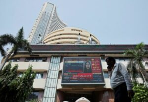 A man walks past a screen displaying market results outside the Bombay Stock Exchange (BSE) in Mumbai, India, April 7, 2025. REUTERS/Francis Mascarenhas