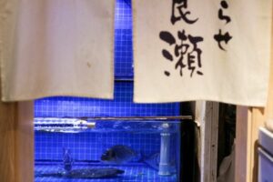 A fish tank is pictured at the Japanese restaurant Merase, which serves seafood such as sushi and sashimi in Shanghai, China, November 19, 2025. REUTERS/Go Nakamura