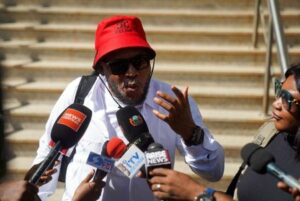 Emmanuel Kanu, brother of Indigenous People of Biafra leader Nnamdi Kanu, reacts outside the Federal High Court in Abuja, Nigeria, November 20, 2025. REUTERS/Marvellous Durowaiye
