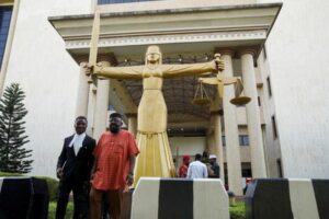 Aloy Ejimakor, a lawyer for Indigenous People of Biafra leader Nnamdi Kanu, takes a break before the sentencing at the Federal High Court in Abuja, Nigeria, November 20, 2025. REUTERS/Marvellous Durowaiye