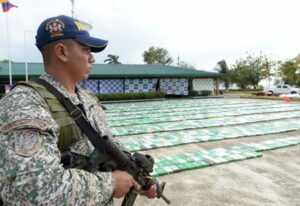 FOTO DE ARCHICO. Un efectivo de la Armada colombiana vigila un cargamento de 5,2 toneladas de cocaína incautado en Turbo, Colombia, 6 de marzo, 2018. Ministerio de Defensa de Colombia/Handout vÍa REUTERS