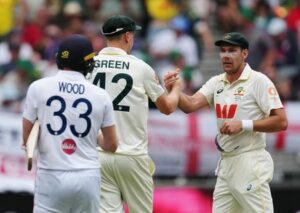 Cricket – The Ashes – Australia v England – First Test – Perth Stadium, Perth, Australia – November 22, 2025 Australia’s Scott Boland celebrates after taking the wicket of England’s Gus Atkinson REUTERS/Asanka Brendon Ratnayake
