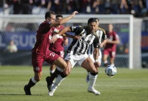 Fútbol – Copa Sudamericana – Final – Lanús v Atlético Mineiro – Estadio Defensores del Chaco, Asunción, Paraguay – 22 de noviembre de 2025. Hulk del Atlético Mineiro en acción con Carlos Izquierdoz de Lanús REUTERS/Cesar Olmedo