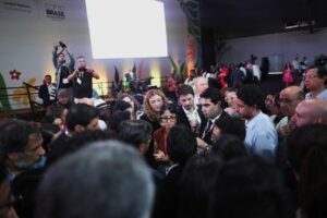 Members of the delegations discuss on the day of the plenary session at the UN Climate Change Conference (COP30), in Belem, Brazil, November 22, 2025. REUTERS/Adriano Machado