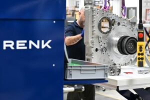 An employee works in the final assembly of gearbox production at the RENK Group, a leading global supplier of highly efficient drive and gearbox technology for the defence industry in Augsburg, Germany, November 20, 2025. REUTERS/Angelika Warmuth