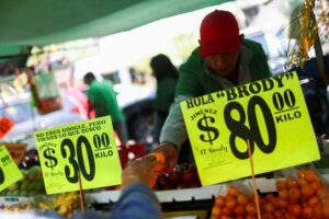 FOTO DE ARCHIVO: Letreros con precios se ven en un puesto en un mercado callejero en la Ciudad de México, México. 2 de diciembre de 2024 REUTERS/Raquel Cunha/Archivo