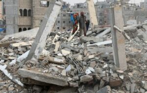 Un palestino se encuentra entre montones de escombros y edificios dañados en Khan Younis, en el sur de la Franja de Gaza, el 24 de noviembre de 2025. REUTERS/Ramadan Abed
