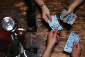 FOTO DE ARCHIVO. Un comprador y un vendedor intercambian pesos mexicanos en un restaurante en Ciudad de México, México, 3 de agosto de 2017. REUTERS/Edgard Garrido