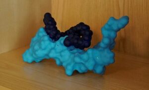 FILE PHOTO: Scientific model of the molecule semaglutide which is the active ingredient in Novo Nordisk’s mega-blockbuster diabetes drug Ozempic and weight-loss drug Wegovy sits in the office of Mads Krogsgaard Thomsen in Hellerup, Denmark, October 3, 2023. REUTERS/Ali Withers/File Photo