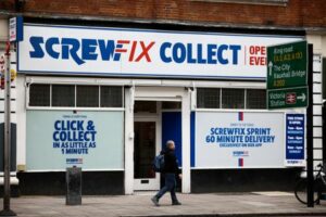 FILE PHOTO: A person walks past a Screwfix store in London, Britain, March 19, 2023. REUTERS/Henry Nicholls/File Photo