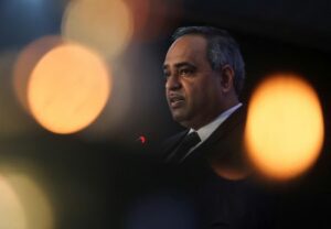 FILE PHOTO: Shailesh Chandra, Managing Director of TATA Motors Passenger Vehicles Limited and Tata Passenger Electric Mobility Limited, speaks during a launch of TATA EV charging station in Mumbai, India, September 9, 2025. REUTERS/Francis Mascarenhas/File Photo